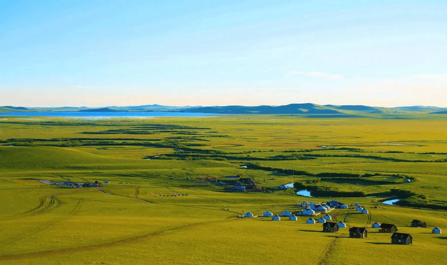 (背景音乐悠扬,天边渐渐泛起曙光,辽阔的草原,静谧而壮美。)